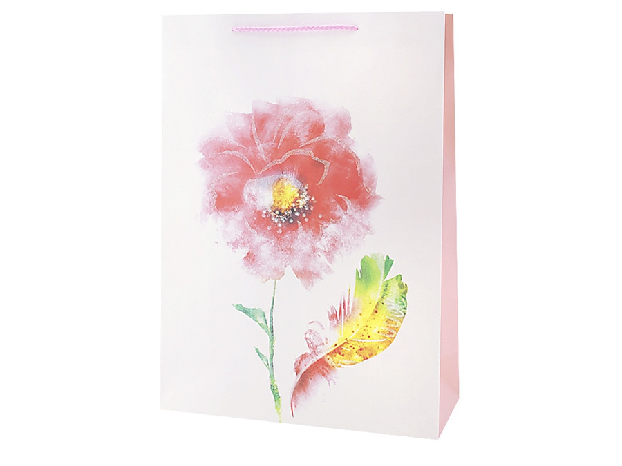 Пакет подарочный "Цветок и перо" с глиттером / 31*42*12 см (Китай)