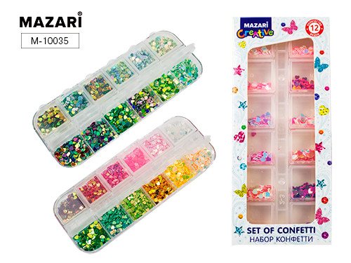 Набор конфетти, 12 цветов, пластиковая коробка (ш-5,5см,в-13см), 11 видов в ассортименте, ОПП-упаков