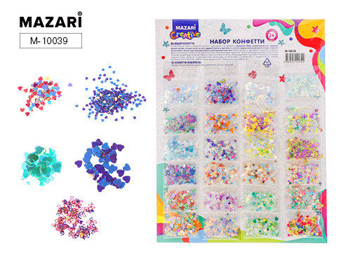 Купить Набор конфетти, 24 цвета, 12 видов в ассортименте, ОПП-упаковка с подвесом (ш-19,5см, в-25см) в интернет-магазине kupi35.ru с доставкой. Набор конфетти, 24 цвета, 12 видов в ассортименте, ОПП-упаковка с подвесом (ш-19,5см, в-25см), артикул M-10039 ДмД: читать описание, характеристики, фото
