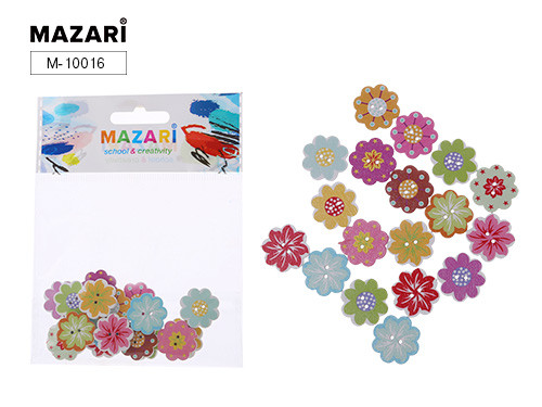 Пуговицы декоративные деревянные FLORET, ассорти 18 дизайнов, ОПП- упаковка