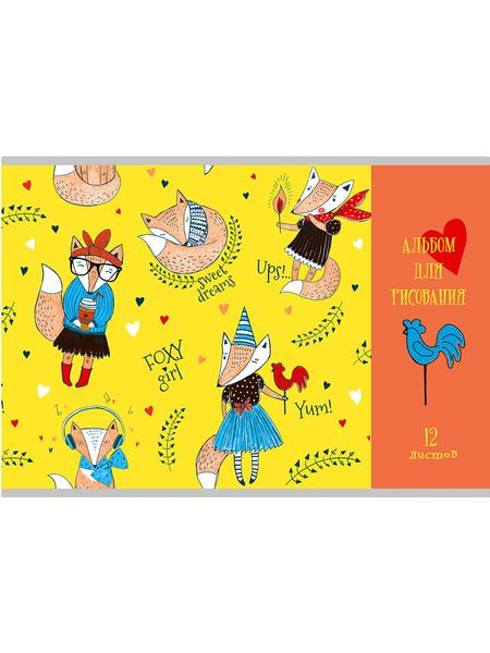 Альбом для рисования А4 12л. СОВРЕМЕННЫЕ ЛИСИЧКИ (12-8762) скрепка, 1 диз. в коробке, 6+0