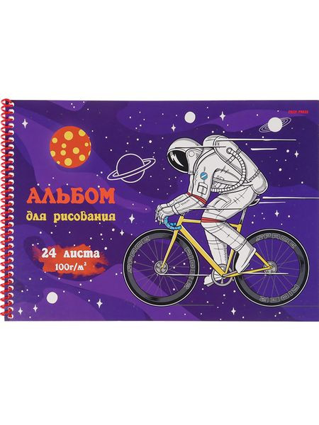 Альбом для рисования А4 24л. КОСМИЧЕСКИЙ ВЕЛОЗАЕЗД (24-3172) цветн.спираль, офсет
