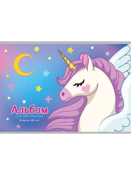 Альбом для рисования А4 24л. КРЫЛАТЫЙ ЕДИНОРОГ-1 (24-9645) скрепка, мелов. обл., офсет