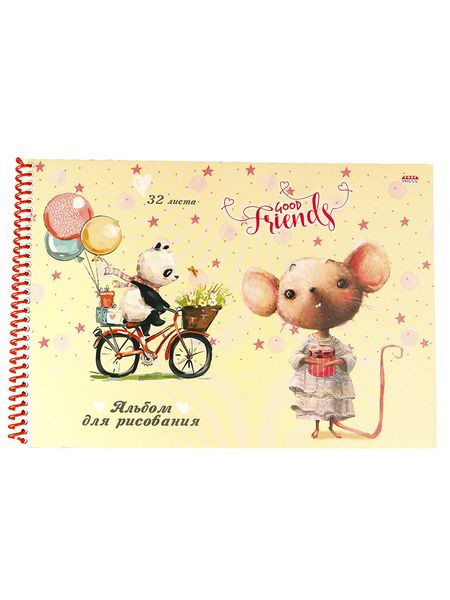 Альбом для рисования А4 32л. ПАНДА И МЫШОНОК (32-5145) цветной спирали, офсет
