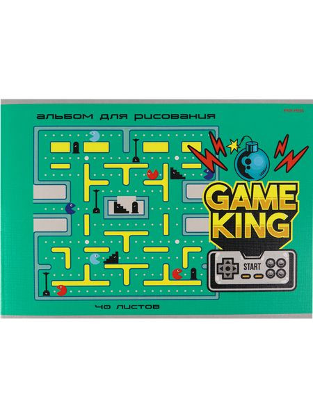 Альбом для рисования А4 40л. КОМПЬЮТЕРНАЯ ИГРА (40-8941) скрепка, 1 диз. в коробке, 6+0 лен