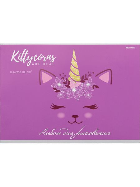 Альбом для рисования А4 8л. КОТИК-ЕДИНОРОЖЕК (08-9540)скреп., мелов. обл.,блок-офс