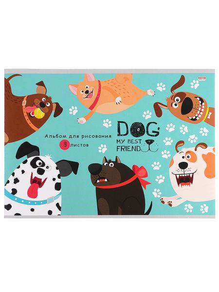 Альбом для рисования А4 8л. СМЕШНЫЕ СОБАЧКИ (08-1505) скреп., мелов. обл.,блок-офс