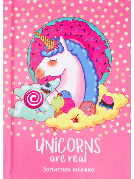 ЗАПИСНАЯ КНИЖКА. А6 64л. ЕДИНОРОГ И СЛАДОСТИ (К64-5983) 7БЦ, лен, глянц.ламинирование, 6+0
