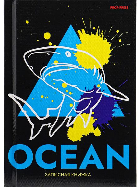 ЗАПИСНАЯ КНИЖКА. А6 64л. СИЛУЭТ АКУЛЫ (64-6485) 7БЦ,глянц.ламинирование, лен