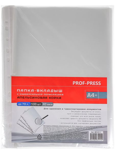 Купить Папка-вкладыш с перфорацией А4+ "апельсиновая корка" (ВП-5111) , 40мкм, кратно 100 в интернет-магазине kupi35.ru с доставкой. Папка-вкладыш с перфорацией А4+ "апельсиновая корка" (ВП-5111) , 40мкм, кратно 100, артикул ВП-5111 ПП: читать описание, характеристики, фото