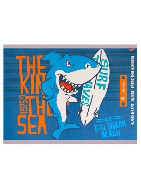 ТМ"Profit" Альбом для рисования А4 8л. АКУЛА-СЁРФЕР (08-1443) скр,обл.-офс, бл-офс