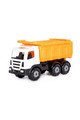 Большой самосвал на трех металлических осях с открывающимся задним бортом для разгрузки. В кузов ребенок сложить все свои песочные принадлежности или детали конструктора, машинки и другие игрушки. В кабину в качестве водителей малыш посадит свои фигурки. Каждый мальчишка желает иметь у себя в автопарке большой самосвал. Размер в упаковке, мм: 670х265х365