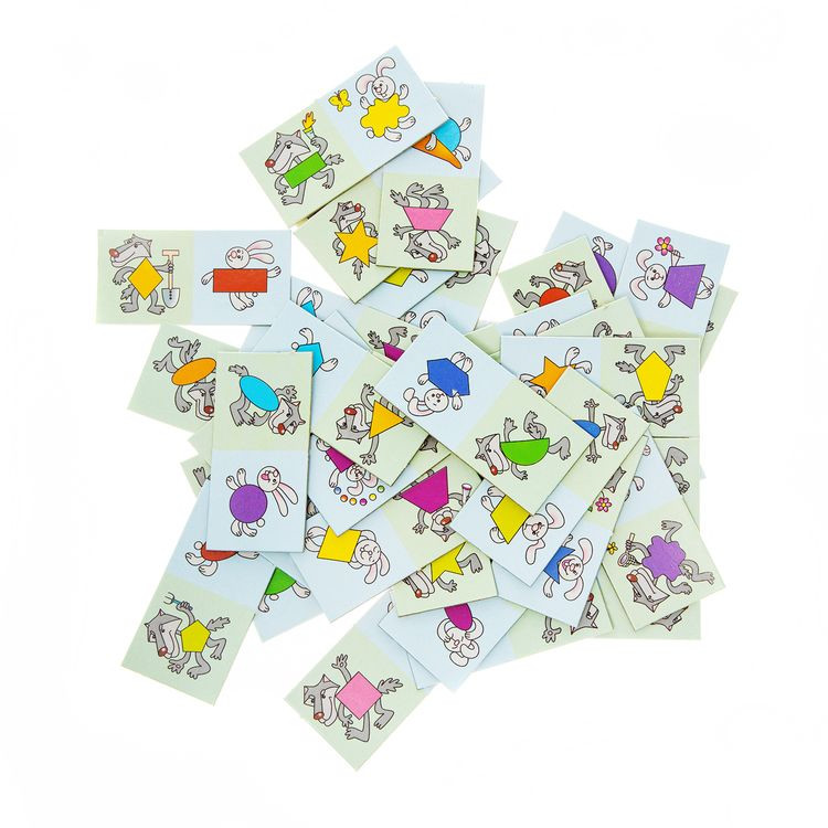 Развивающее умное домино «Цвета и фигуры» познакомит малышей с забавными разноцветными геометрическими волками и зайчиками, поможет быстро запомнить названия цветов и 12 простых геометрических фигур, а также научит группировать предметы по одному общему признаку, не обращая внимания на другие. В отличие от обычного домино, в умном домино не 28, а 36 костяшек, и они стыкуются друг с другом по всем четырем направлениям. Это делает игру более содержательной, непредсказуемой и требует от игроков большей внимательности. В остальном правила такие же, как в обычном домино. Соревновательный характер игры превратит процесс обучения в развлечение и позволит в короткие сроки достичь значительных результатов. Умное домино «Цвета и фигуры» предназначено для 2-8 участников в возрасте от 4 до 8 лет. Размер картонных фишек 8х4 см. Автор игры: Олеся Емельянова Авторская поддержка: (обзор настольной обучающей игры «Умное домино: цвета и фигуры», подробное описание, правила, фото) . Детское домино «Цвета и фигуры» входит в серию из 12 обучающих и развивающих игр «Умное домино» .