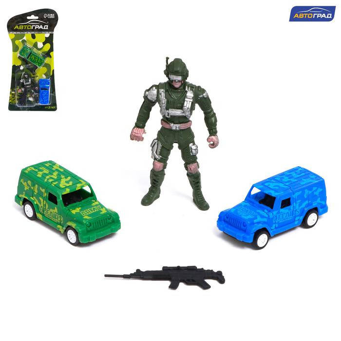 АВТОГРАД Набор игровой "Армия", 2 машинки и 1 солдат, инерция, SL-042337, МИКС 5043396