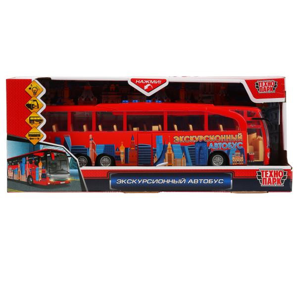 Машина свет+звук экскурсионный автобус 30см,пластик,4 кнопки,инерц,красный в кор Технопарк в кор24шт
