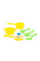 Почувствовать себя в роли маленького шеф-повара ребёнок сможет с набором детской посуды "Поварёнок". Набор представлен в нескольких цветовых вариантах; он компактный, яркий и привлекательный. В наборе предусмотрены: кастрюля большая - 1 шт., кастрюля с ручкой - 1 шт., сковорода с крышечкой - 1 шт., лопатка - 1 шт., шумовка - 1 шт., черпак - 1 шт. Размер в упаковке, мм: 195х145х90
