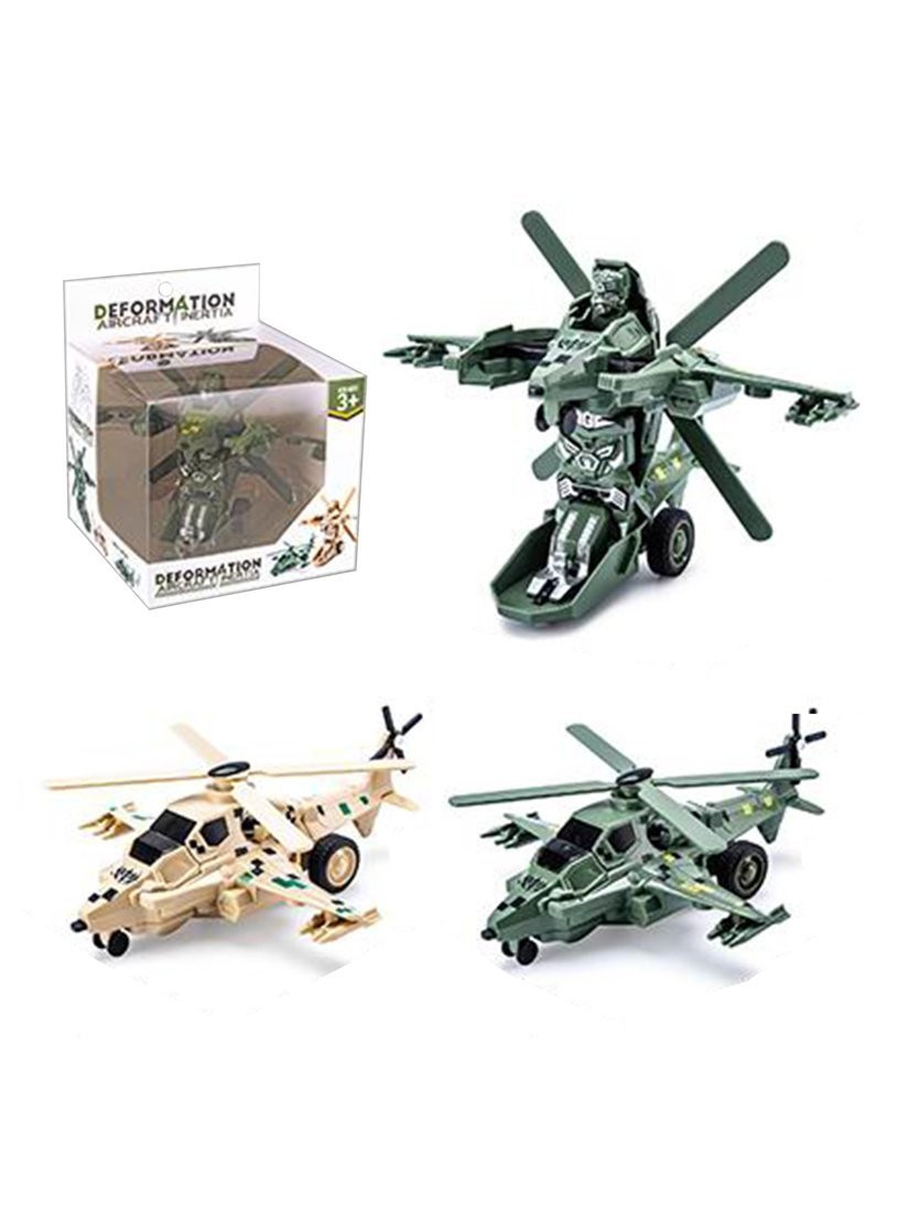 Вертолёт-трансформер с инерционным механизмом движения станет прекрасным подарком для любителей такого рода игрушек! Для того, чтобы игрушка двигалась вперед самостоятельно, ее нужно поставить на ровную поверхность, разогнать поступательными движениями руки, а затем отпустить. Для того, чтобы трансформировать игрушку из вертолёта в робота, следует нажать на кнопку в передней части ее корпуса. При столкновении с препятствиями вертолет трансформируется в робота автоматически. Игрушка представлена в ассортименте. Размер игрушки в виде вертолета составляет 17х14,5х6 см. Размер игрушки в виде робота составляет 12х16х11 см. Изготовлено из полимерных материалов. Рекомендованный возраст: 3 года +