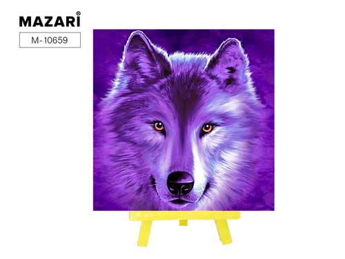Алмазная мозаика с мольбертом 20х20 см ВЗГЛЯД ВОЛКА,1 дизайн, частичная выкладка, стразы разного ра