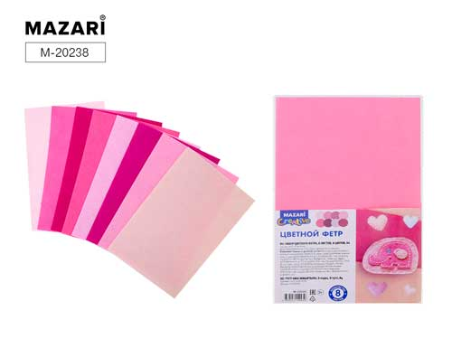 Купить Набор цветного фетра РОЗОВЫЙ 8 л., 8 цв., формат А4, толщина 1 мм, ОПП-упаковка в интернет-магазине kupi35.ru с доставкой. Набор цветного фетра РОЗОВЫЙ 8 л., 8 цв., формат А4, толщина 1 мм, ОПП-упаковка, артикул M-20238 ДмД: читать описание, характеристики, фото