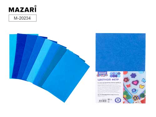 Купить Набор цветного фетра СИНИЙ 8 л., 8 цв., формат А4, толщина 1 мм, ОПП-упаковка в интернет-магазине kupi35.ru с доставкой. Набор цветного фетра СИНИЙ 8 л., 8 цв., формат А4, толщина 1 мм, ОПП-упаковка, артикул M-20234 ДмД: читать описание, характеристики, фото