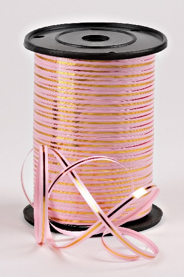 Лента с золотой полосой Подарочная Декоративная - 0.5х250у Розовая А0547