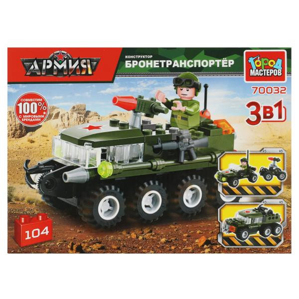 Конструктор бронетранспортёр 3в1, 104 дет. Город мастеров в кор.2*40шт