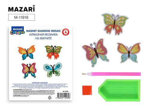 Купить Алмазная мозаика на магните БАБОЧКИ 7,5х7,5см, 4 штуки в наборе, ОПП-упаковка в интернет-магазине kupi35.ru с доставкой. Алмазная мозаика на магните БАБОЧКИ 7,5х7,5см, 4 штуки в наборе, ОПП-упаковка, артикул M-11918 ДмД: читать описание, характеристики, фото