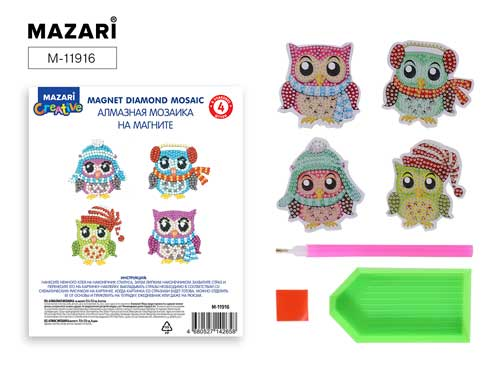 Купить Алмазная мозаика на магните СОВУШКИ 7,5х7,5см, 4 штуки в наборе, ОПП-упаковка в интернет-магазине kupi35.ru с доставкой. Алмазная мозаика на магните СОВУШКИ 7,5х7,5см, 4 штуки в наборе, ОПП-упаковка, артикул M-11916 ДмД: читать описание, характеристики, фото