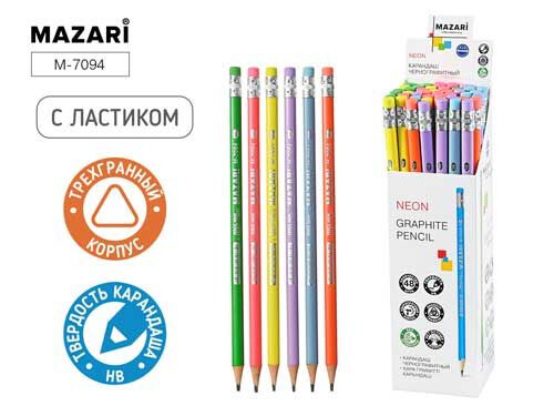 Купить Карандаш чернографитный пластиковый NEON, НВ, с ластиком, корпус трехгранный, картонная упаковка в интернет-магазине kupi35.ru с доставкой. Карандаш чернографитный пластиковый NEON, НВ, с ластиком, корпус трехгранный, картонная упаковка, артикул M-7094 ДмД: читать описание, характеристики, фото