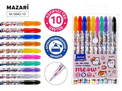 Купить Набор ручек гелевых с блёстками MEOW, с ароматизированными чернилами, 10 цв., пулевидный пиш.узел 0. в интернет-магазине kupi35.ru с доставкой. Набор ручек гелевых с блёстками MEOW, с ароматизированными чернилами, 10 цв., пулевидный пиш.узел 0., артикул M-5840-10 ДмД: читать описание, характеристики, фото