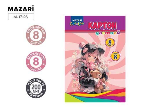 Купить Набор цветного картона немелованного, 8 л., 8 цв., 200*280 мм, плотность 200 г/м2, в папке в интернет-магазине kupi35.ru с доставкой. Набор цветного картона немелованного, 8 л., 8 цв., 200*280 мм, плотность 200 г/м2, в папке, артикул M-17126 ДмД: читать описание, характеристики, фото