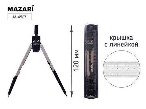 Купить Циркуль 120 мм, металлический, крышка - линейка, пластиковая упаковка без подвеса в интернет-магазине kupi35.ru с доставкой. Циркуль 120 мм, металлический, крышка - линейка, пластиковая упаковка без подвеса, артикул M-4527 ДмД: читать описание, характеристики, фото