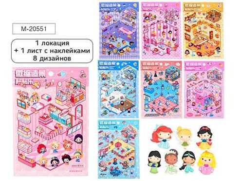 Наклейки РУМБОКС, 15,5*22,5 см, 1 локация, 1 лист с наклейками, 8 дизайнов в ассортименте, ОПП-упако