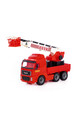 Автомобиль пожарный выглядит максимально реалистично. Ребёнок сможет узнать больше о специальной технике, которая задействована в спасательных операциях и в тушении пожаров на высоте. Автомобиль оснащён выдвижной пожарной лестницей, угол наклона которой можно менять. Также предусмотрены люлька и имитация гидрантов. На поворотной платформе установлен подъёмный механизм. Платформа машины поворачивается на 360°, стрела с лестницей поднимается на 65° и выдвигается на 30 см с помощью шестеренчатого колеса. Борта кузова в данной модели откидываются. Автомобиль пожарный серии выполнен из качественного и прочного пластика. Размер в упаковке, мм: 585х185х320