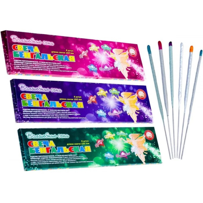Купить Свеча бенгальская 160 мм (6шт/упак) цветопламенная "Волшебные огни" (L=16,5см) в интернет-магазине kupi35.ru с доставкой. Свеча бенгальская 160 мм (6шт/упак) цветопламенная "Волшебные огни" (L=16,5см), артикул СБ160В06 НА: читать описание, характеристики, фото