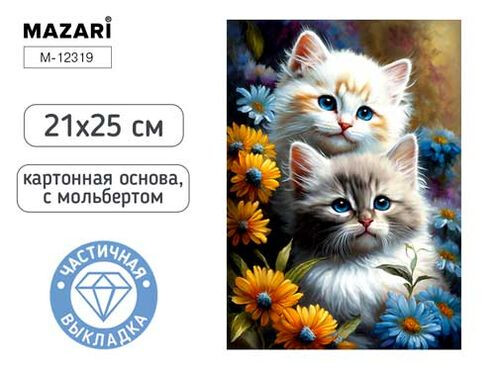 Алмазная мозаика с мольбертом КОТЯТА, 21х25см, 1 дизайн, частичная выкладка, ОПП-упаковка.