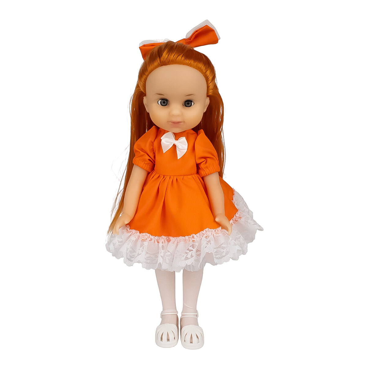 Кукла Лилия — воплощение яркости и весеннего настроения. Длинные оранжевые волосы и платье в тон создают эффектный образ, который вдохновляет детей на игру и фантазию.